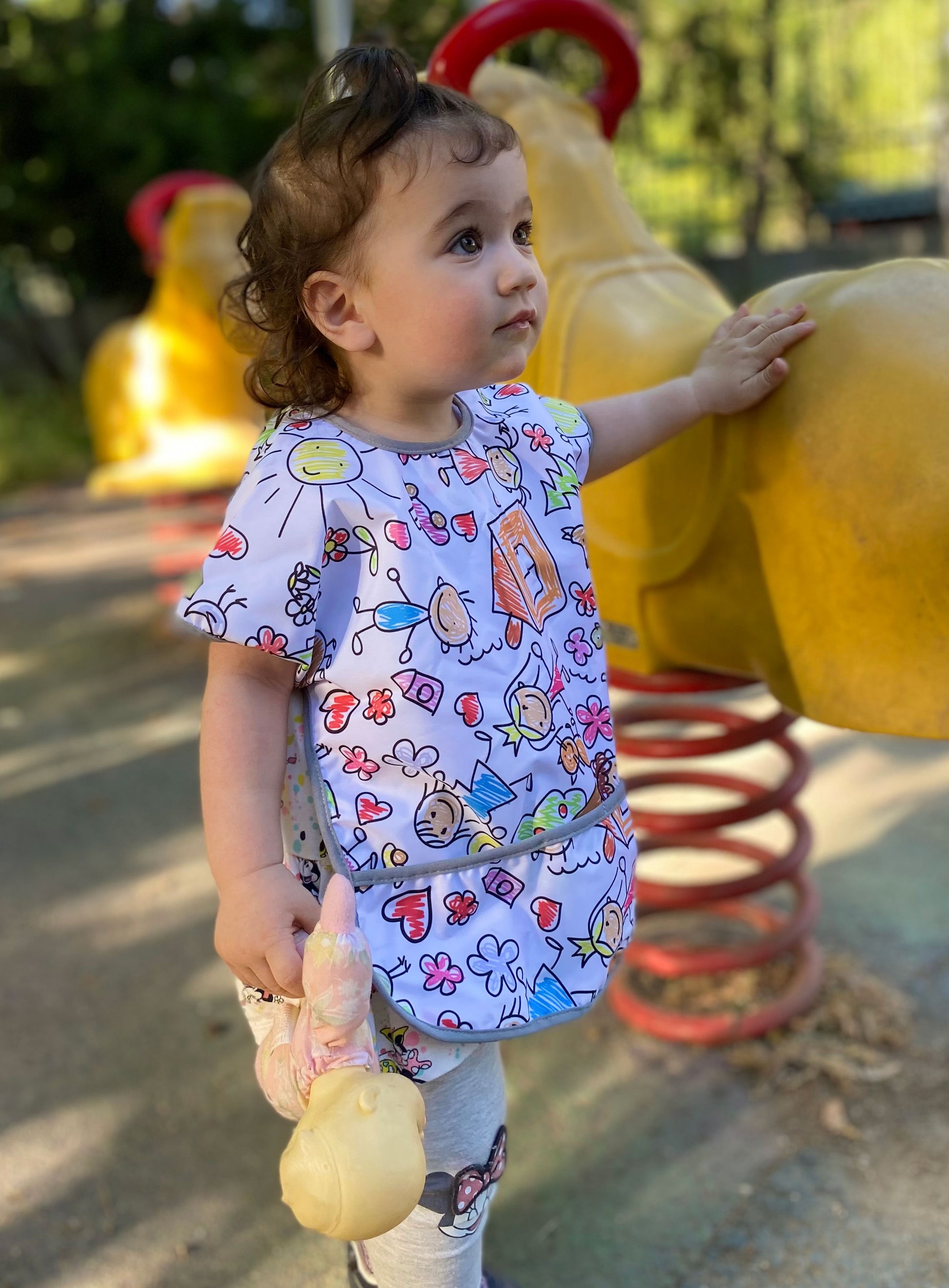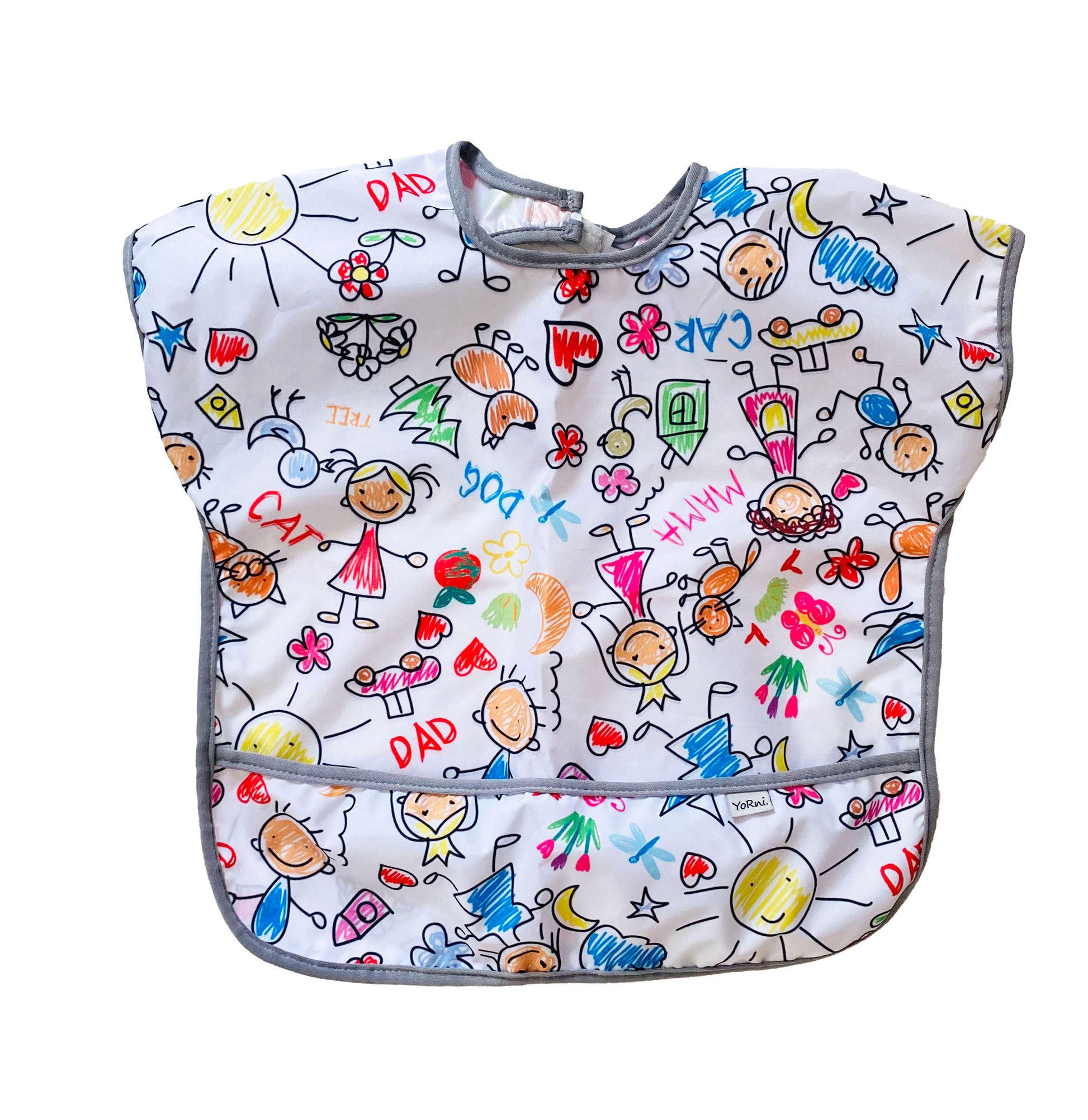 Oyun ve yemek zamanlarında en büyük yardımcınız! Yiyeceklerle oynamayı seven minikler için tasarlanan Yorni kısa kollu önlük, hem sıvı geçirmez hem de makinede yıkanabilir özel teknik kumaşıyla çocuğunuzun kıyafetlerini korur.