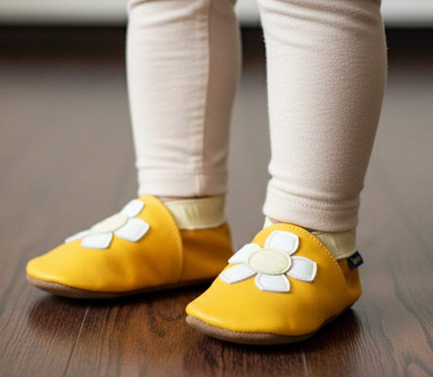 2748, Geranium Yellow İnch Blue %100 Hakiki Deri, El Yapımı Bebek Çocuk Patik