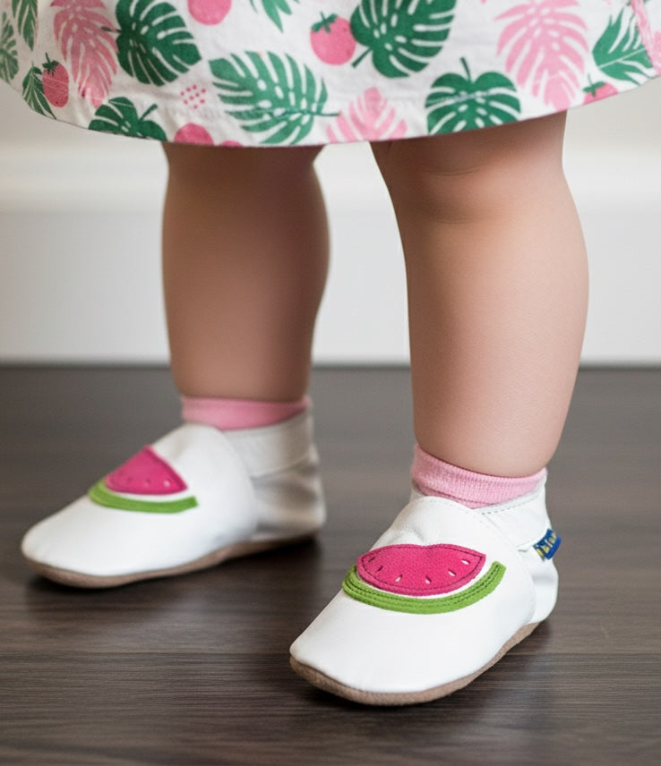 2866, Watermelon İnch Blue %100 Hakiki Deri, El Yapımı Bebek Çocuk Patik