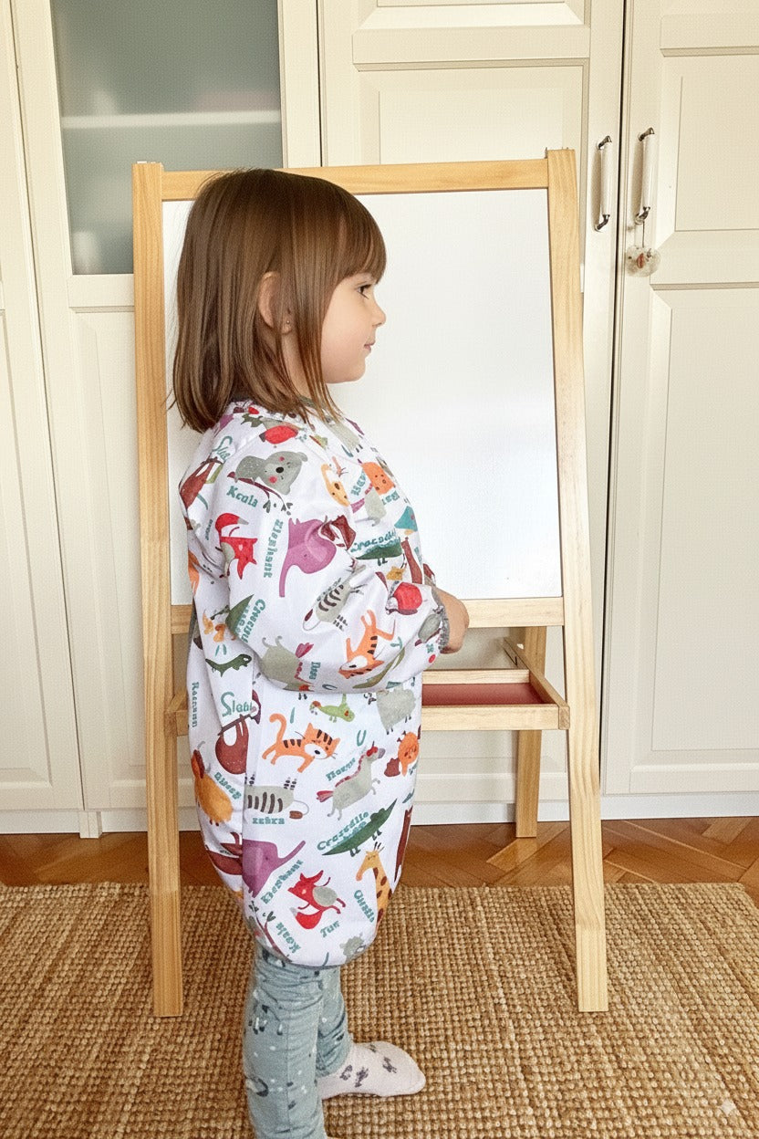 Çocuğunuzun resim yapma ve faaliyet zamanlarında kıyafetlerinin kirlenmesini engelleyen bu uzun kollu önlük, kreş veya ana sınıflarında faaliyet/aktivite derslerinde kullanılabilir. Ekstra koruma sağlamak için uzun kollu olarak tasarlanmıştır ve küçük kıyafetlerinizi temiz tutmanıza yardımcı olur. Beslenme zamanında da kullanıma uygundur.
