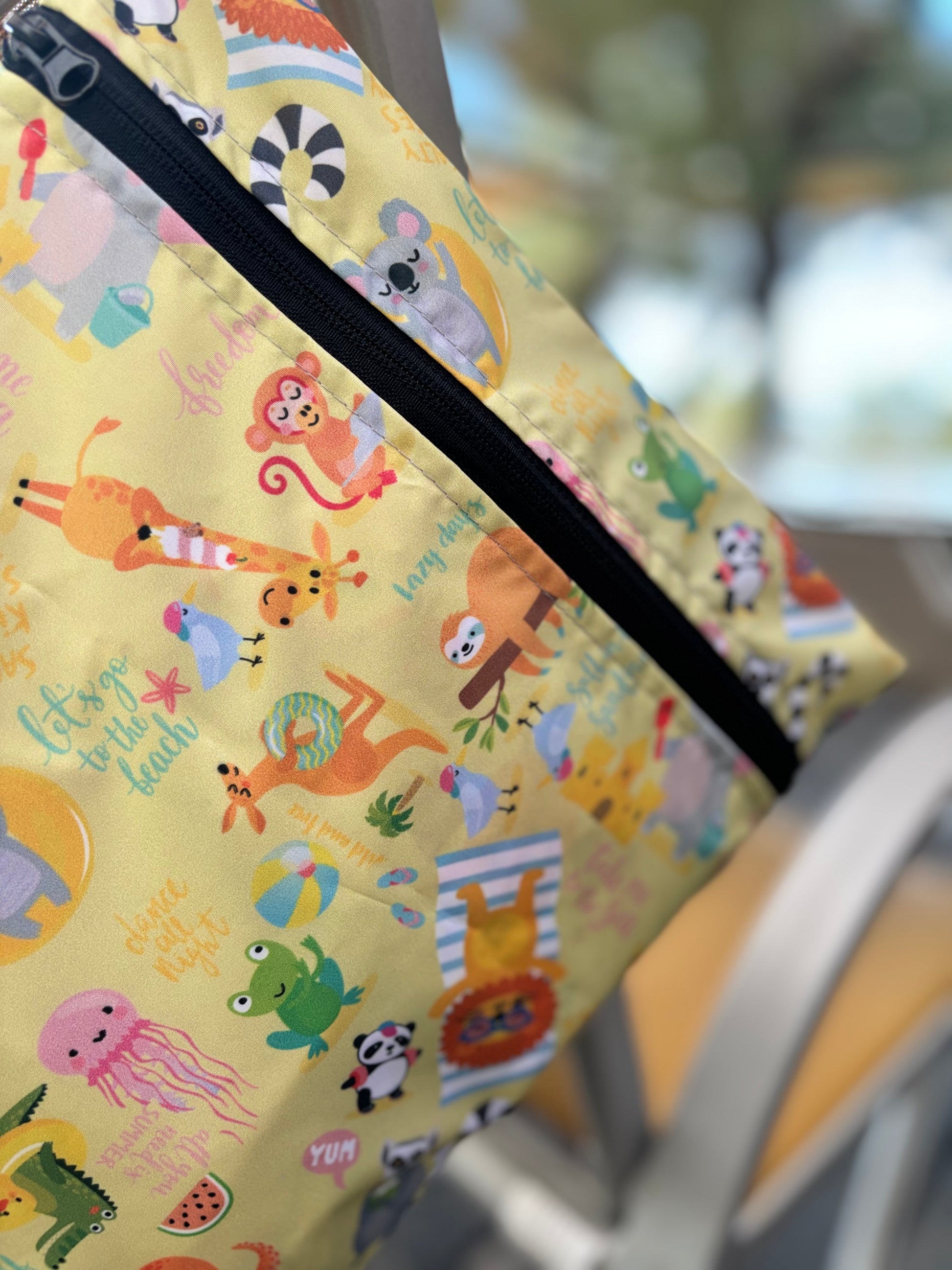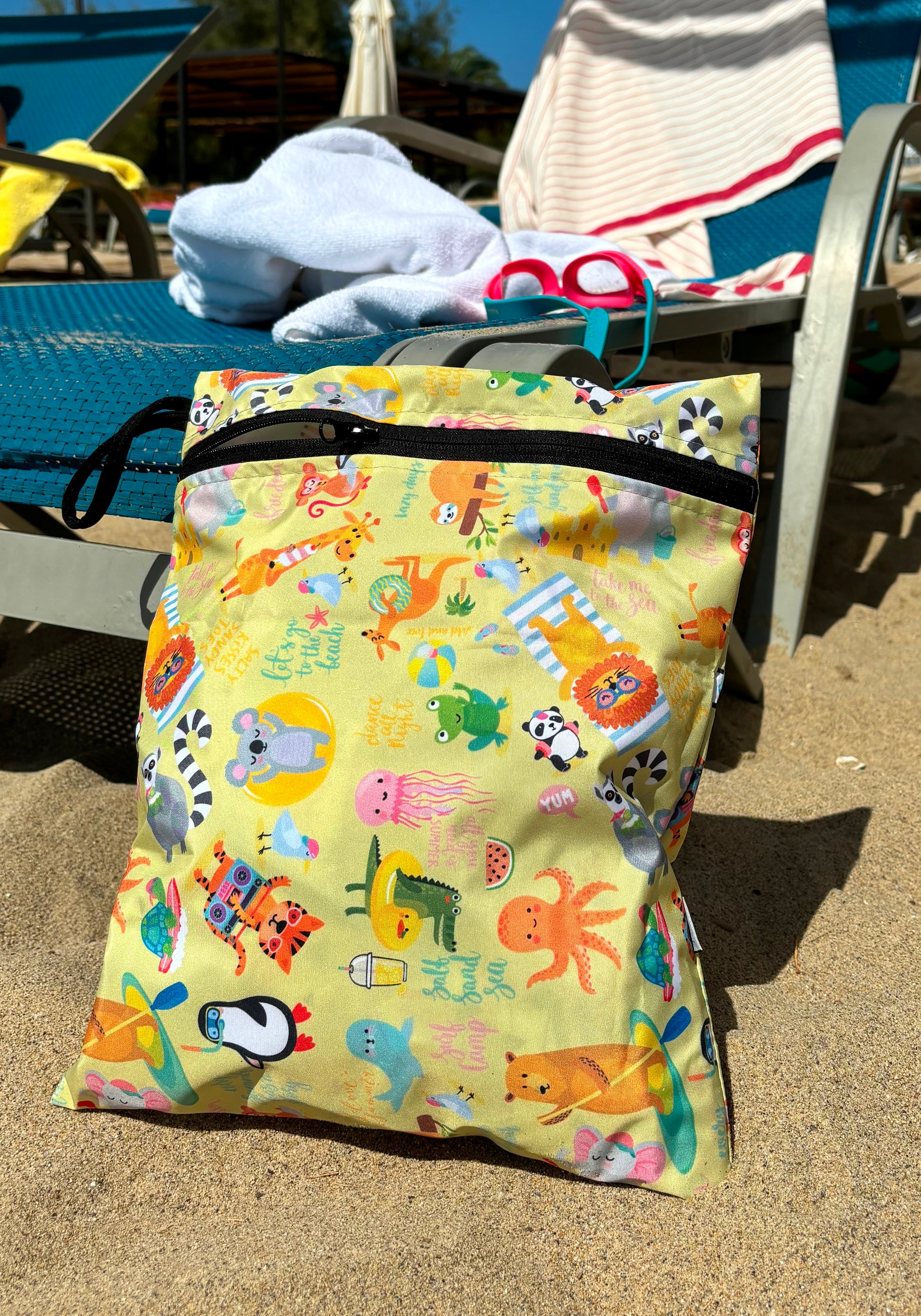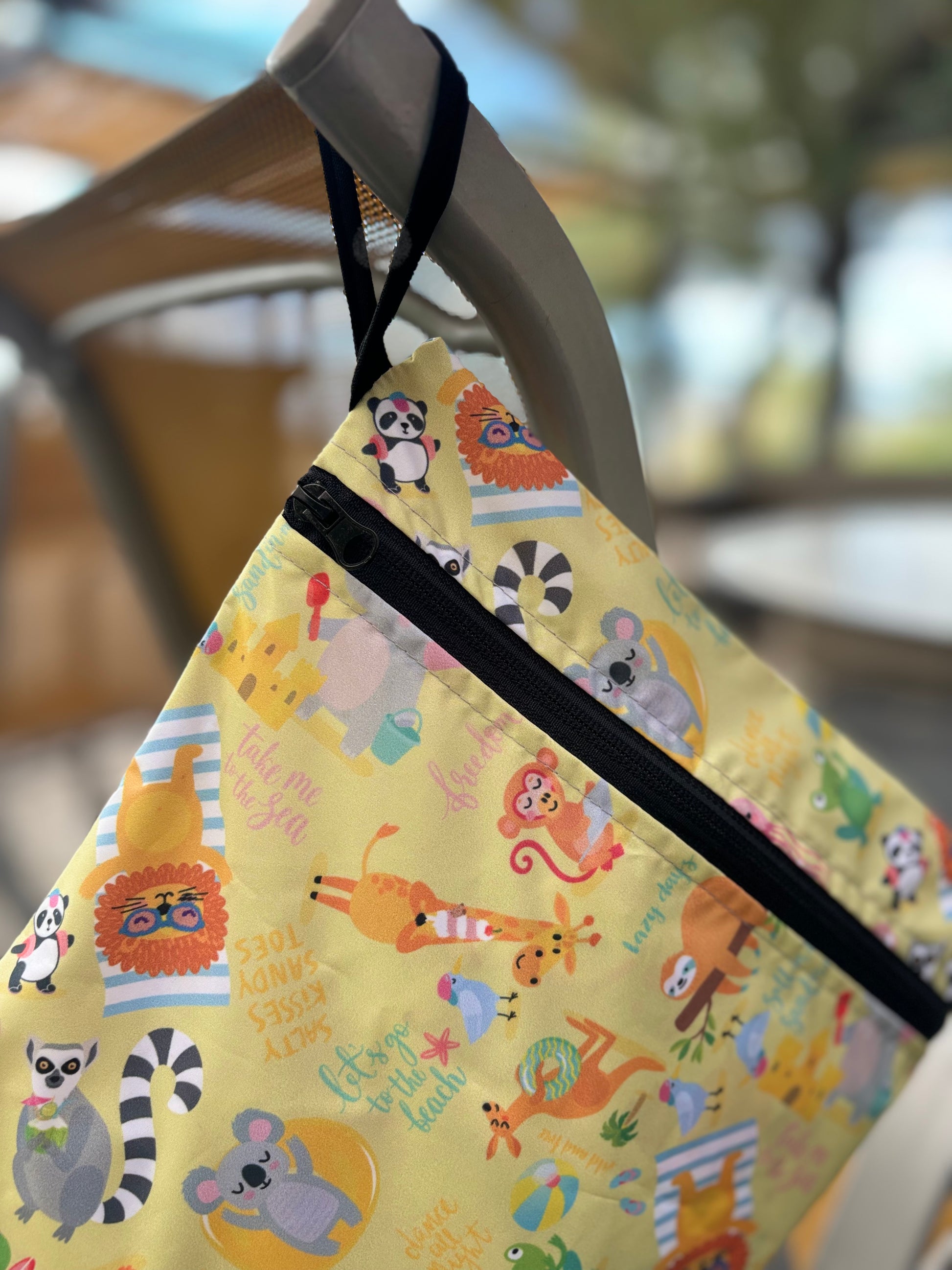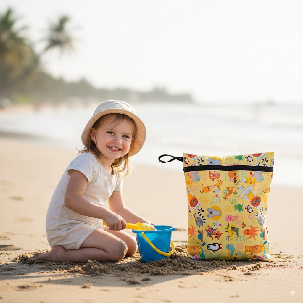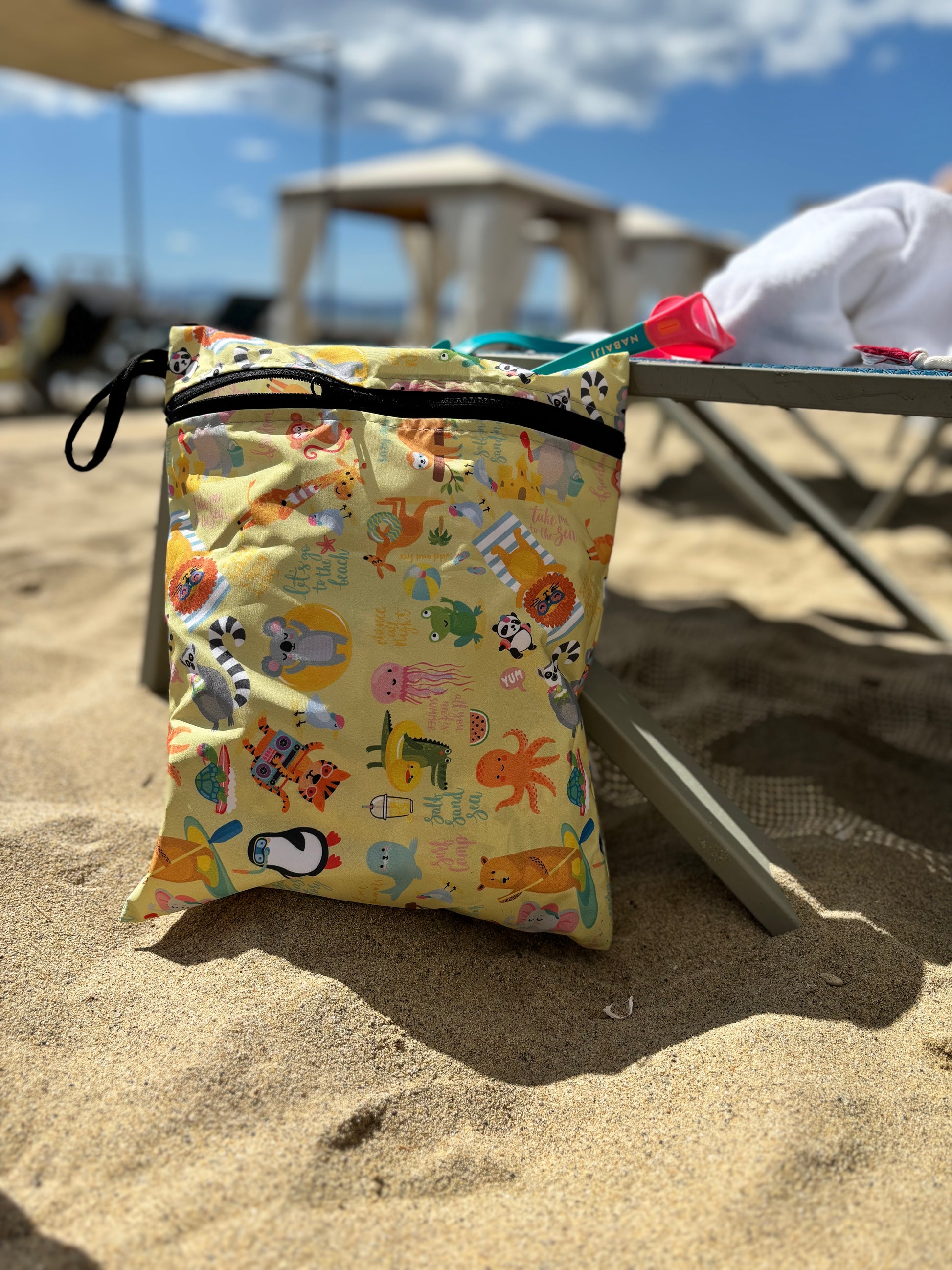 "Fermuarlı, Askılı, Su Geçirmez, Islak Mayo, Kıyafet, Kirli Bez Taşıma Çantası" Kaliteli Malzeme: İki katlı kumaş, sıvı geçirmez özelliğe sahiptir.; Yıkandıkça teknik özelliklerini kaybetmez.; Tek katlı daha ucuz kumaşlar 2-3 yıkamadan sonra su geçirmeye başlar.; Çok Amaçlı Kullanım: İster ıslak isterseniz kuru ve kirli eşyaları taşımak için idealdir.; Sağlam ve dayanıklıdır.; Tatil İçin Harika: Plajda veya havuzda ıslak mayo ve kıyafetlerin kurumasını beklemeden bu çantaya koyup eve gidebilirsiniz.; Bebeğiniz İçin: Kirli bebek bezi, kirli/terli spor kıyafetleri, oyuncaklar, makyaj malzemeleri ve elektronik ürünler için de kullanılabilir.; Hızlı Kuruma: Silerek veya makinada yıkanarak temizlenir.; Asmak için askısı vardır.; Moda Desenleri: Günlük yaşamınıza renk katar.; Bu ürün, bebeğinizin ıslak, temiz veya kirli çamaşırlarını, ıslak mendilini, oyuncaklarını taşımak için harika bir seçenektir.; Ayrıca bebek bakım çantası içinde eşyaları sınıflandırmak için de kullanılabilir.; Su ile temas etmesini istemediğiniz, oyuncak, makyaj malzemesi ve elektronik ürünler için de uygundur.; %100 Polyester iplikle dokunmuş, OEKOTEKS 100 teknik kumaş.; Azo-Boyar madde, bpa, pvc, vinyl, phthalate, kurşun içermez.; Su bazlı boyalıdır.; " *** "Yorni Zippered, Strappy, Waterproof, Wet Swimsuit, Clothing, Dirty Laundry Carrying Bag looks highly functional and environmentally friendly! Size of the bag is written in the name of the product page.; Here are some of Yorni bag's features: Quality Material: Made from two-layer fabric, it has a waterproof feature.; Even after washing, it retains its technical specifications.; Single-layer cheaper fabrics tend to start leaking after 2-3 washes.; Versatile Use: Whether wet or dry, it’s ideal for carrying dirty items.; It’s sturdy and durable.; Perfect for Vacation: You can put wet swimsuits and clothes in this bag at the beach or pool without waiting for them to dry.; For Your Baby: It’s suitable for carrying dirty baby diapers, sweaty sports clothes, and toys.; It can also help organize items in your baby care bag.; Quick Drying: It can be cleaned by wiping or machine washing.; It has a hanging strap.; Fashionable Patterns: Adds color to your daily life.; 🌟👜" Yorni bag is a great choice for carrying your baby’s wet, clean, or dirty laundry, wet wipes, and toys.; It’s also suitable for protecting electronic items from water.; Before placing wet items inside, make sure to squeeze out excess water.; Note that this bag is not designed for carrying water directly; filling it with water may cause leaks at the seams.; It’s made from 100% polyester thread, OEKOTEX 100 technical fabric.; It’s free from azo dyes, BPA, PVC, vinyl, phthalates, and lead.; The coloring is water-based