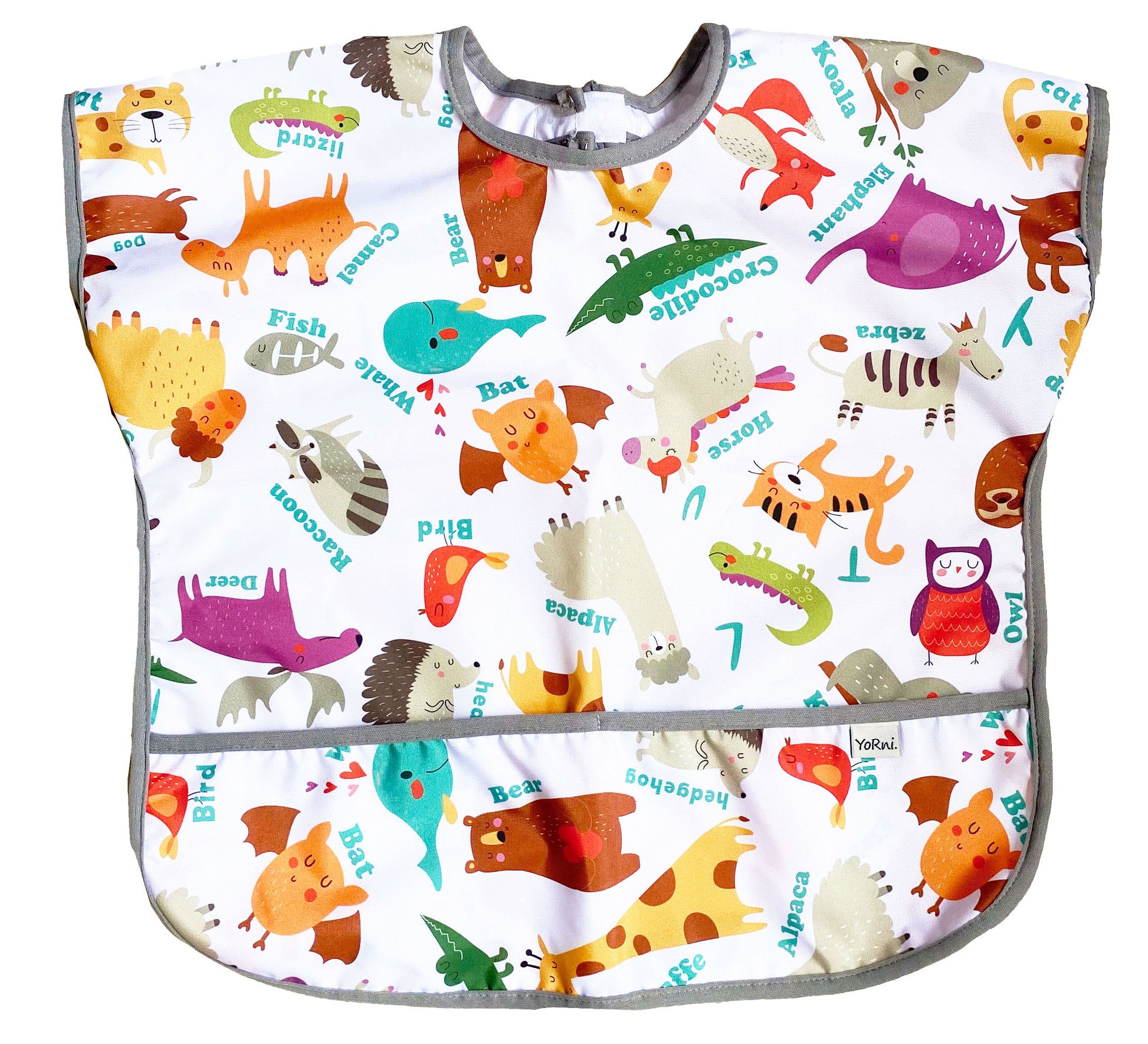 1-3 Yaş, Zoo, Sıvı Geçirmeyen, KISA Kollu, Cepli, Cırtlı Mama Önlüğü, Önlük, Çok Amaçlı Beslenme Önlüğü