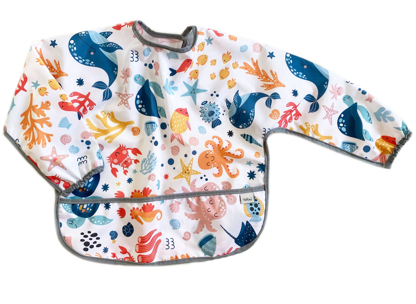 Ocean, Sıvı Geçirmeyen, Uzun Kollu, Cepli, Cırtlı Mama Önlüğü, Önlük, Çok Amaçlı Beslenme Önlüğü