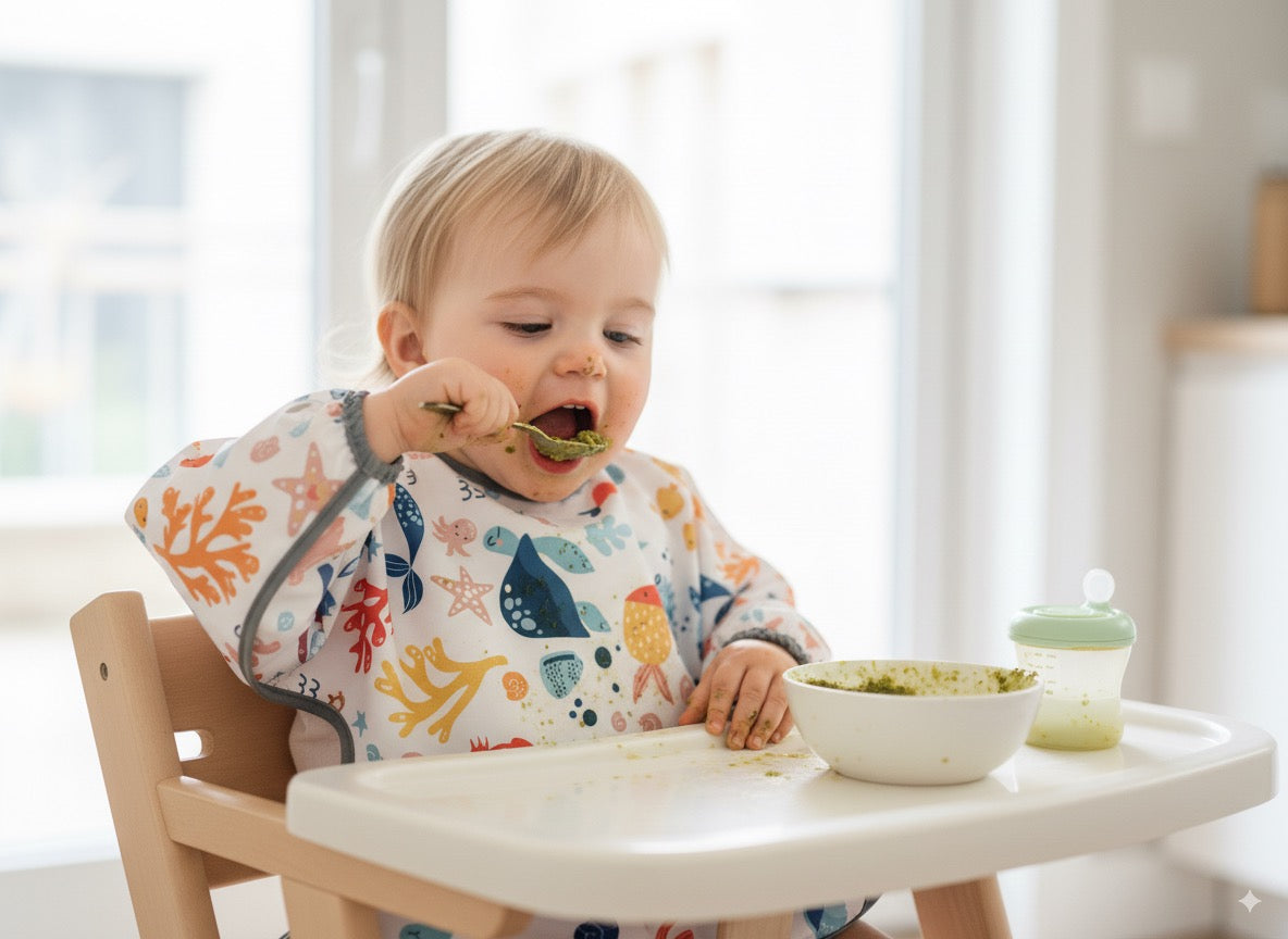 💧 Yorni Uzun Kollu Cepli, Cırtlı, Çocuk Mama ve Beslenme Önlüğü