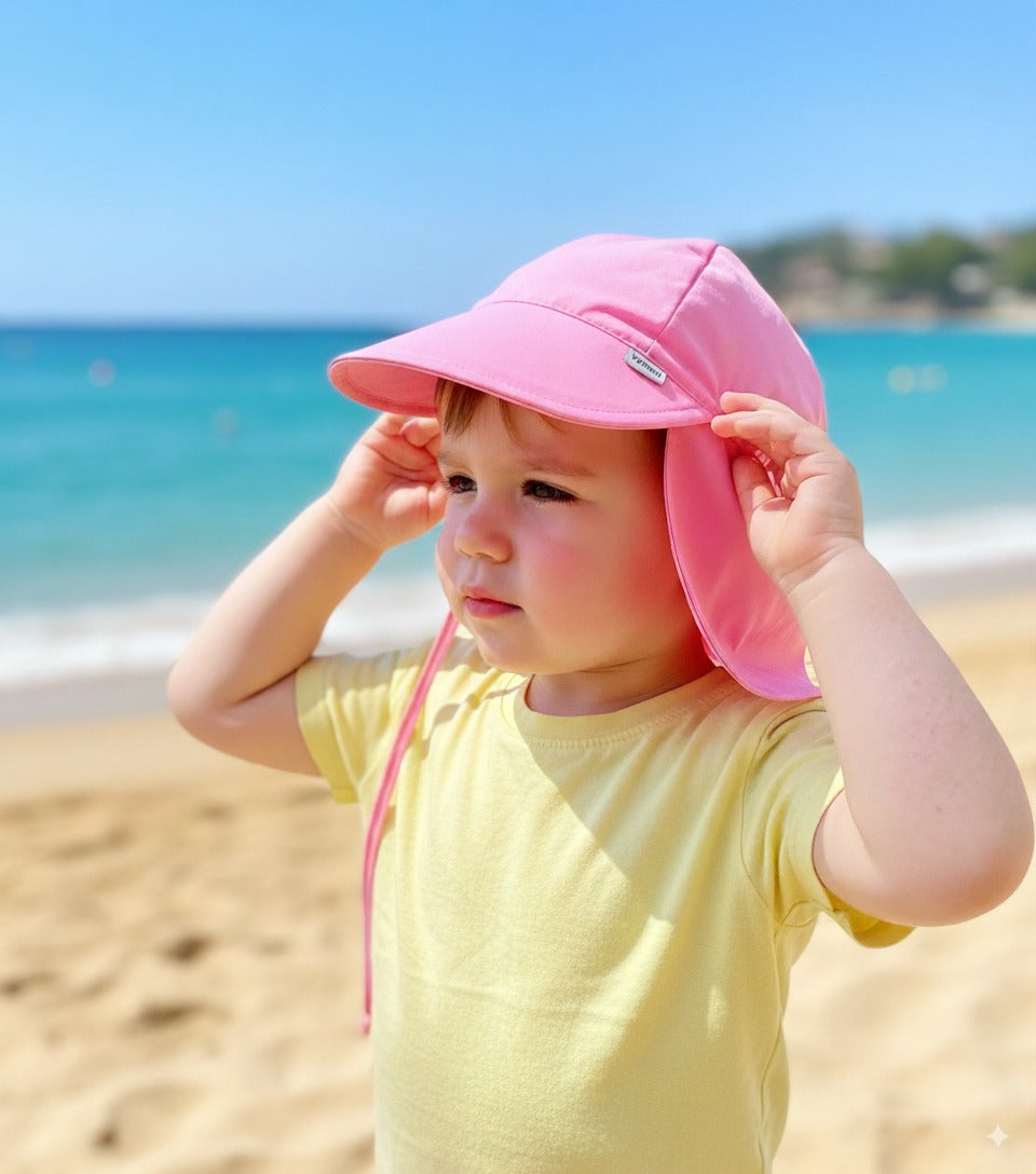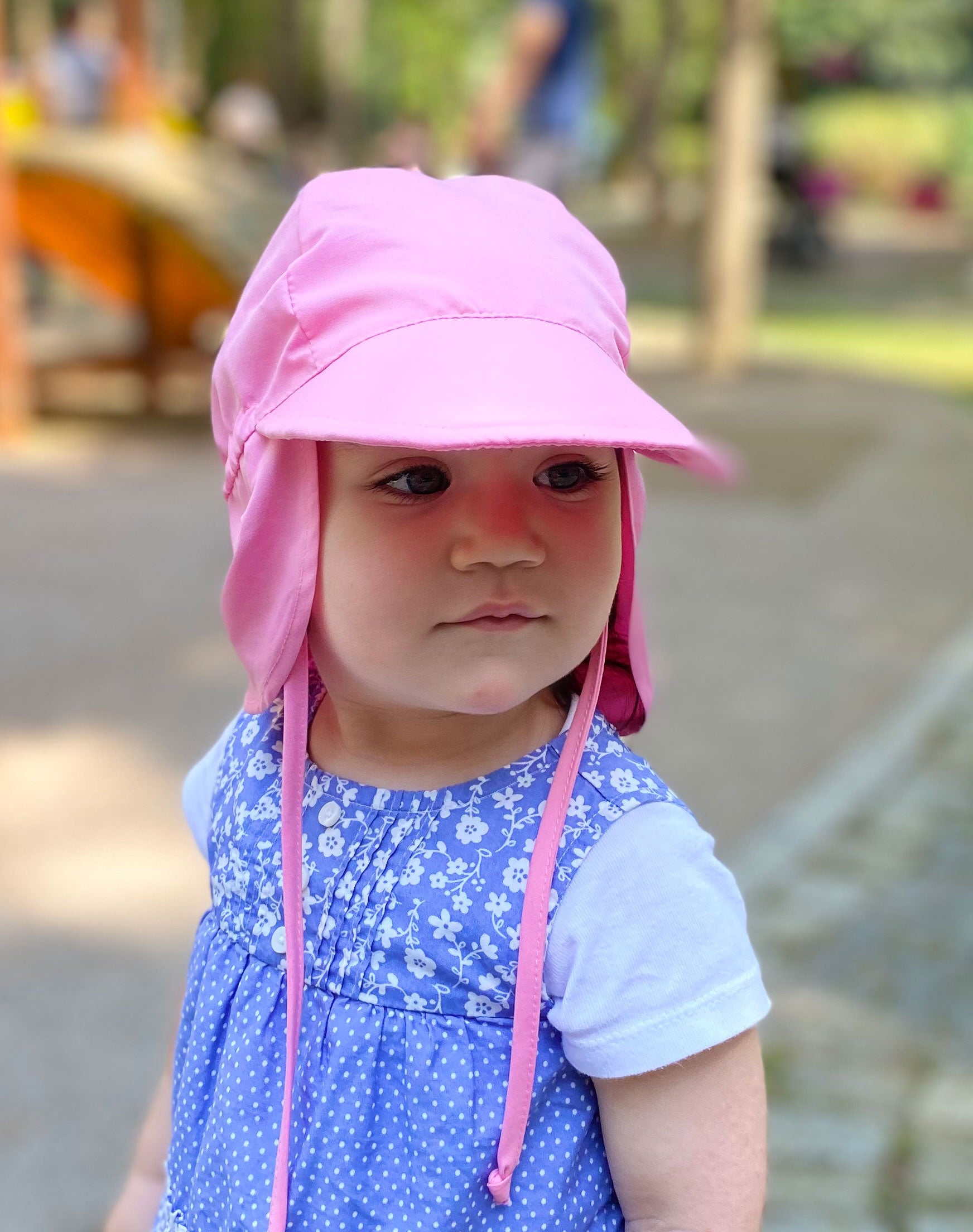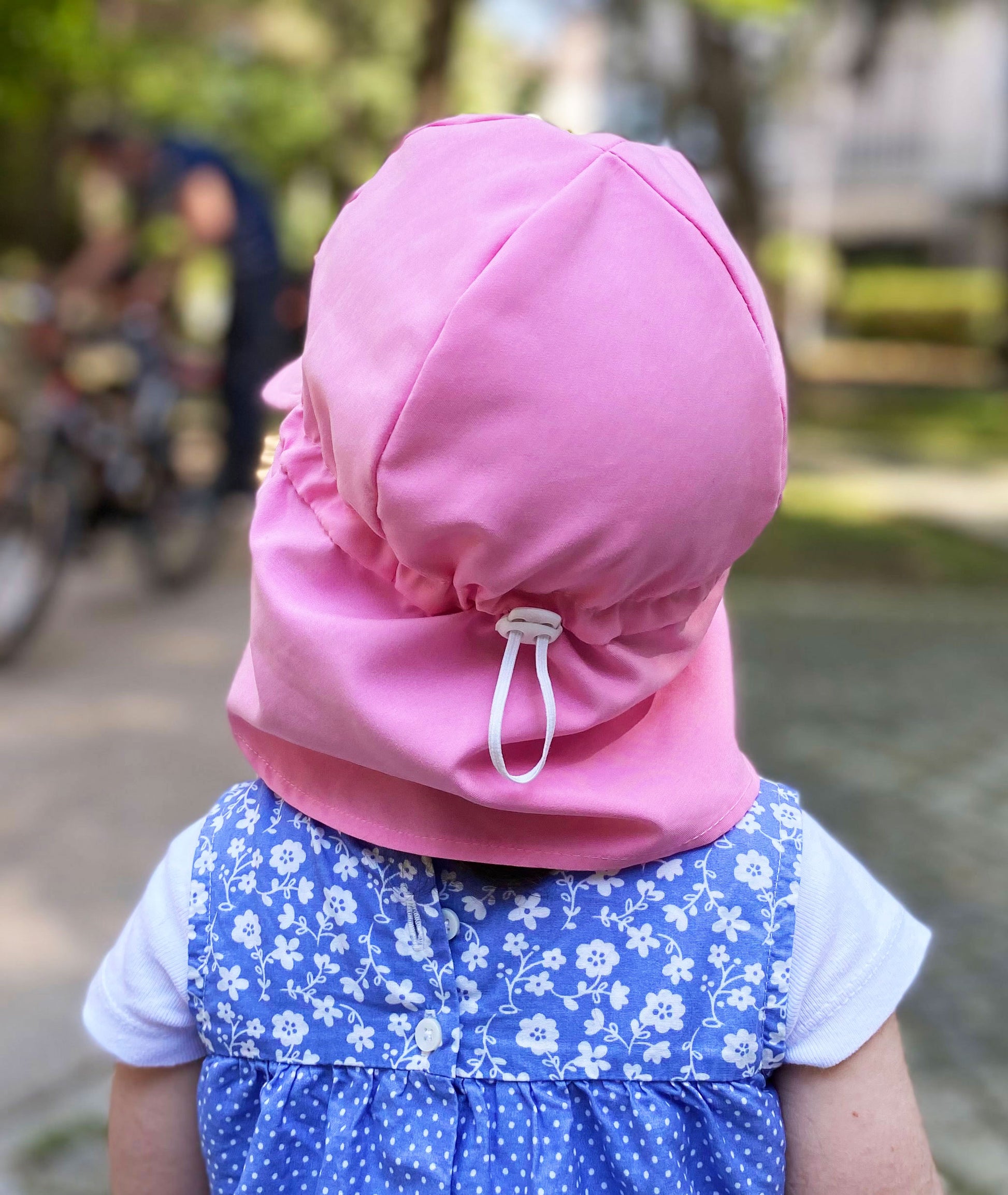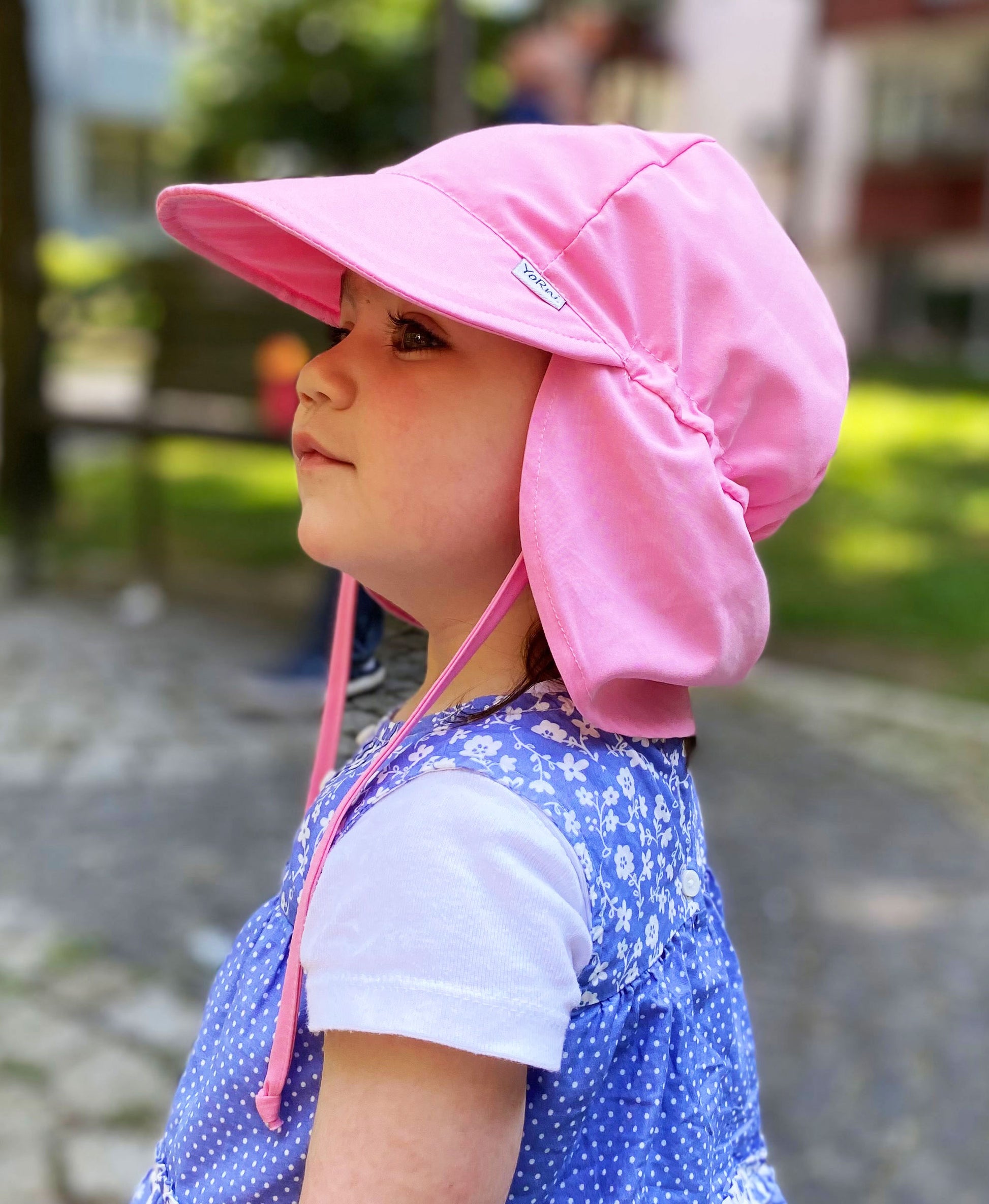 Pembe, Ense Korumalı, Boyundan Bağlamalı, Arkası Ayar Tokalı, Astarlı Çocuk Bebek Güneş Şapka