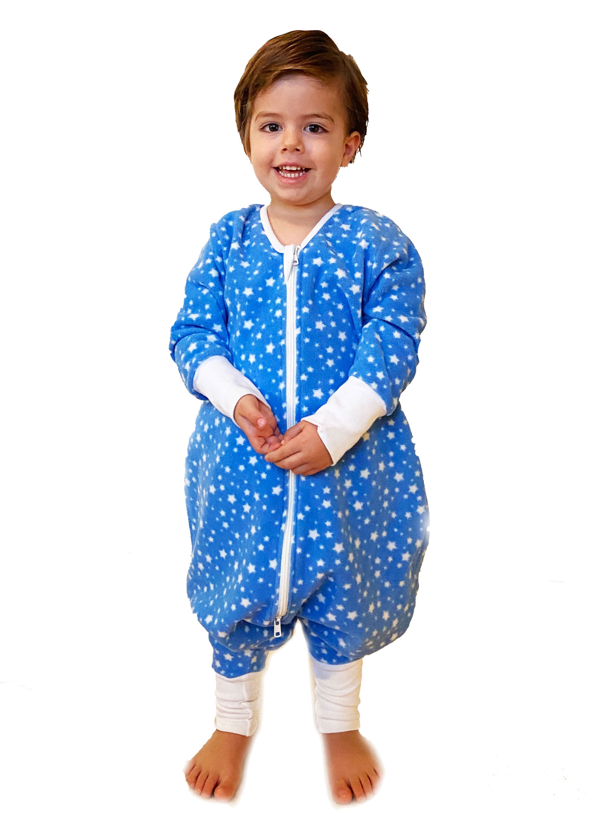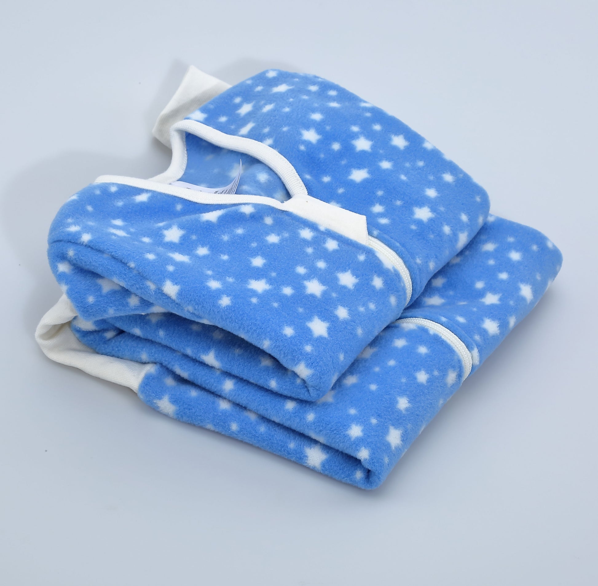 Mavi Yıldızlı, Çift Taraflı Fermuarlı, Mikro Polar Bebek Çocuk Uyku Tulumu