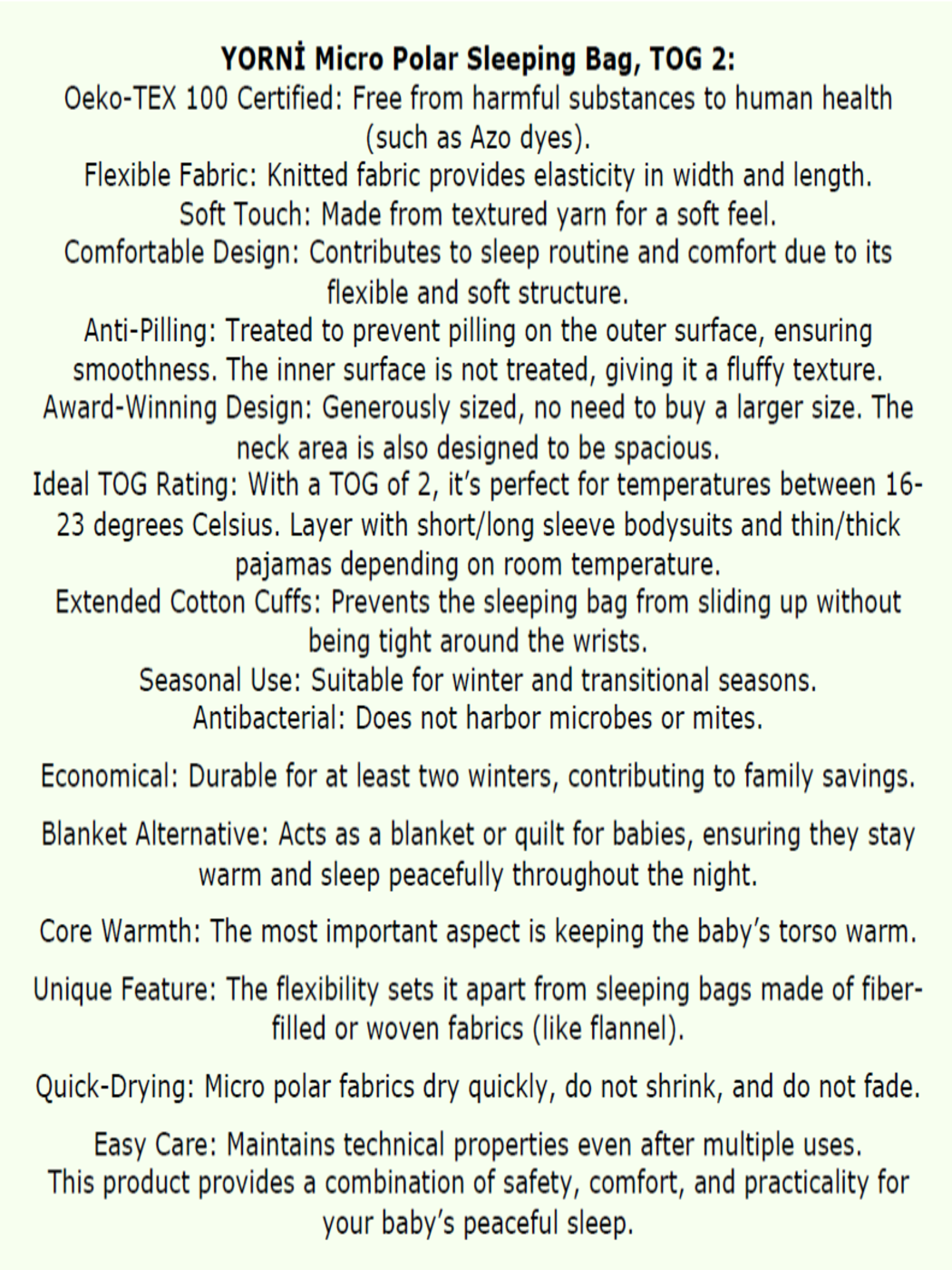 - Kışlık ve mevsimliktir, sıcak yaz geceleri için uygun değildir.