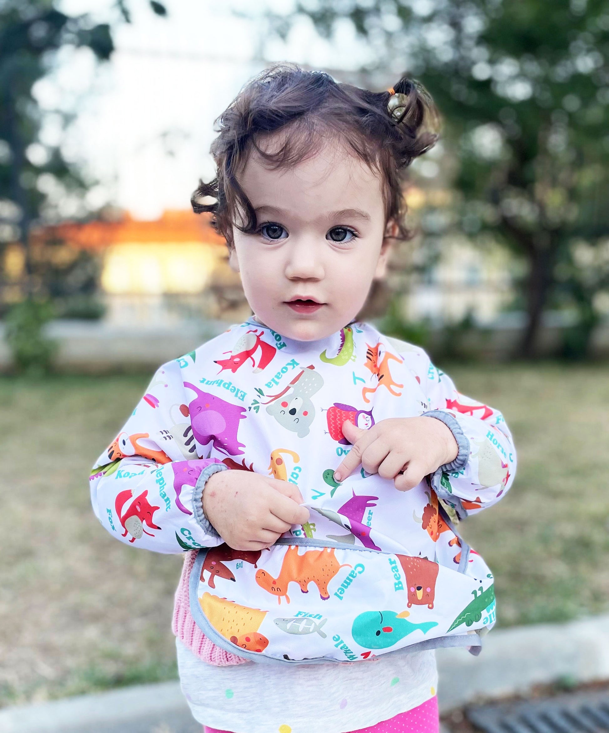 Zoo, Sıvı Geçirmeyen, Uzun Kollu, Cepli, Cırtlı Mama Önlüğü, Önlük, Çok Amaçlı Beslenme Önlüğü