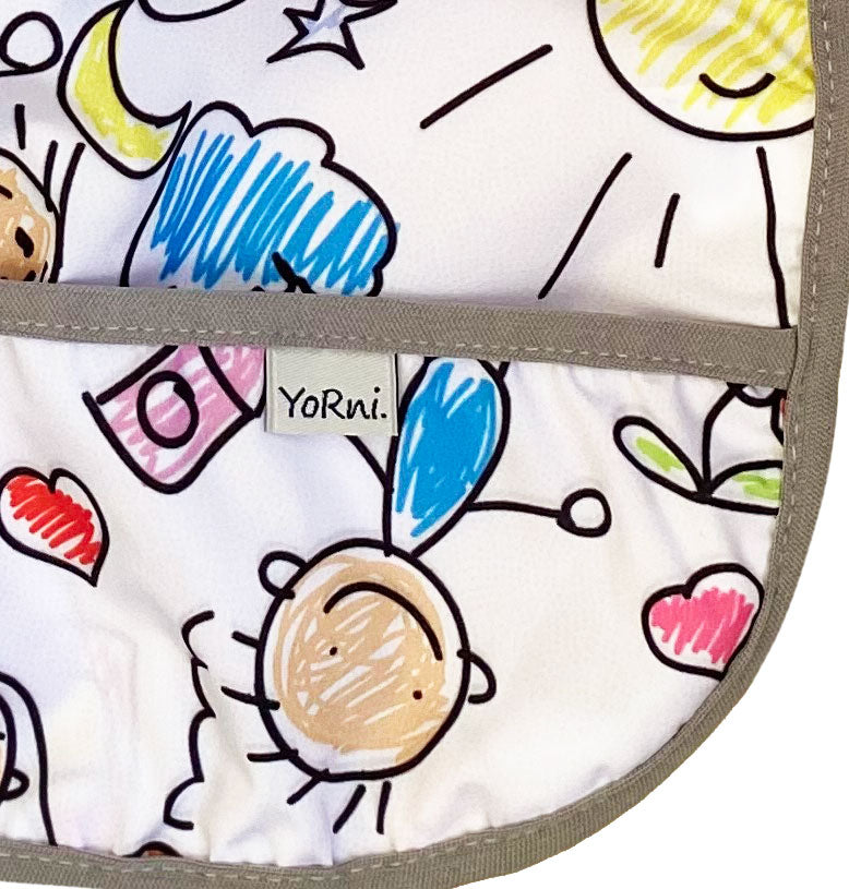 Oyun ve yemek zamanlarında en büyük yardımcınız! Yiyeceklerle oynamayı seven minikler için tasarlanan Yorni uzun kollu önlük, hem sıvı geçirmez hem de makinede yıkanabilir özel teknik kumaşıyla çocuğunuzun kıyafetlerini korur.
