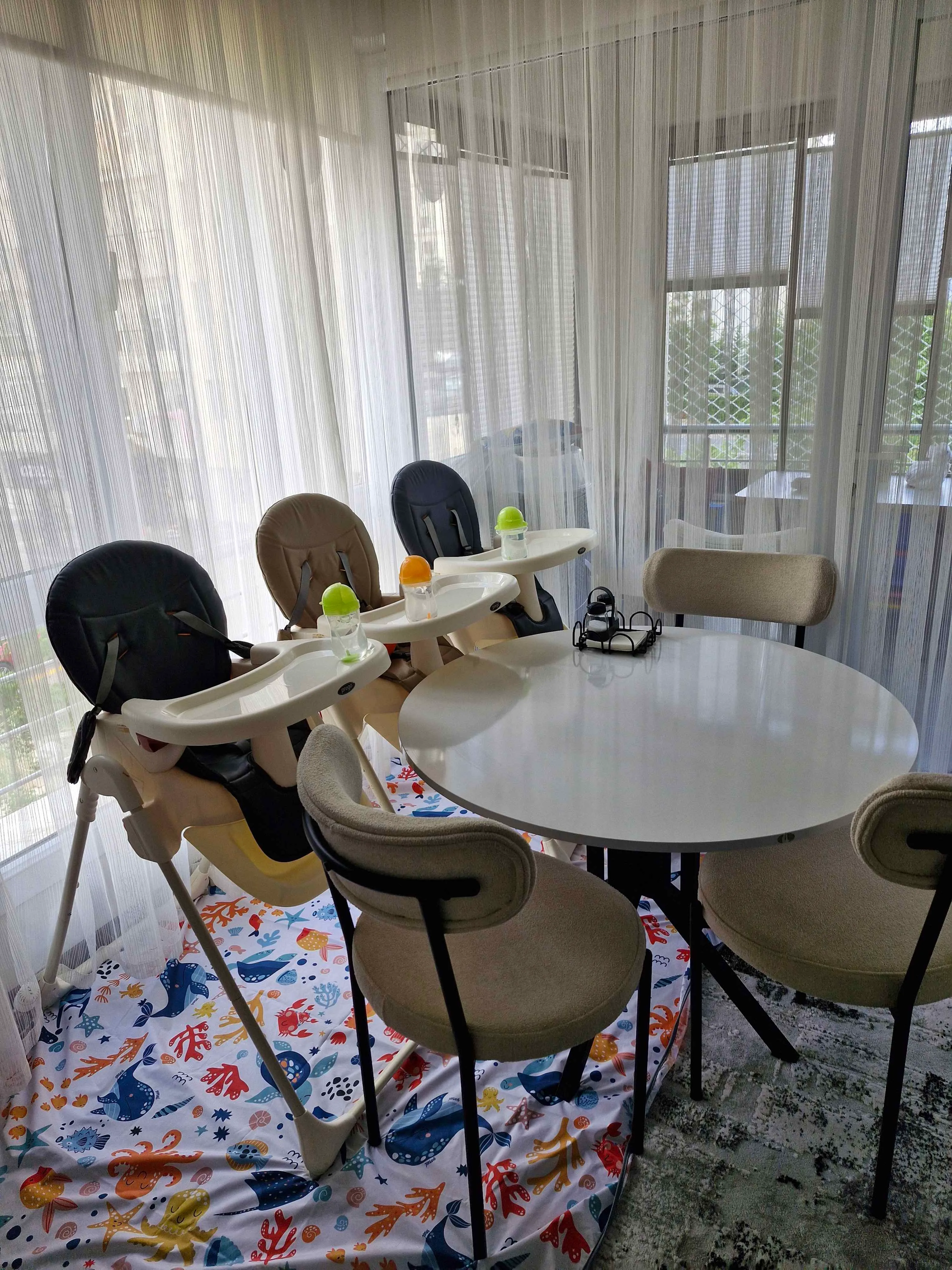 - Mama sandalyesi veya bebek küveti altına serilebilir.