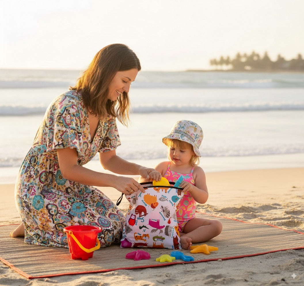 "Fermuarlı, Askılı, Su Geçirmez, Islak Mayo, Kıyafet, Kirli Bez Taşıma Çantası" Kaliteli Malzeme: İki katlı kumaş, sıvı geçirmez özelliğe sahiptir.; Yıkandıkça teknik özelliklerini kaybetmez.; Tek katlı daha ucuz kumaşlar 2-3 yıkamadan sonra su geçirmeye başlar.; Çok Amaçlı Kullanım: İster ıslak isterseniz kuru ve kirli eşyaları taşımak için idealdir.; Sağlam ve dayanıklıdır.; Tatil İçin Harika: Plajda veya havuzda ıslak mayo ve kıyafetlerin kurumasını beklemeden bu çantaya koyup eve gidebilirsiniz.; Bebeğiniz İçin: Kirli bebek bezi, kirli/terli spor kıyafetleri, oyuncaklar, makyaj malzemeleri ve elektronik ürünler için de kullanılabilir.; Hızlı Kuruma: Silerek veya makinada yıkanarak temizlenir.; Asmak için askısı vardır.; Moda Desenleri: Günlük yaşamınıza renk katar.; Bu ürün, bebeğinizin ıslak, temiz veya kirli çamaşırlarını, ıslak mendilini, oyuncaklarını taşımak için harika bir seçenektir.; Ayrıca bebek bakım çantası içinde eşyaları sınıflandırmak için de kullanılabilir.; Su ile temas etmesini istemediğiniz, oyuncak, makyaj malzemesi ve elektronik ürünler için de uygundur.; %100 Polyester iplikle dokunmuş, OEKOTEKS 100 teknik kumaş.; Azo-Boyar madde, bpa, pvc, vinyl, phthalate, kurşun içermez.; Su bazlı boyalıdır.; " *** "Yorni Zippered, Strappy, Waterproof, Wet Swimsuit, Clothing, Dirty Laundry Carrying Bag looks highly functional and environmentally friendly! Size of the bag is written in the name of the product page.; Here are some of Yorni bag's features: Quality Material: Made from two-layer fabric, it has a waterproof feature.; Even after washing, it retains its technical specifications.; Single-layer cheaper fabrics tend to start leaking after 2-3 washes.; Versatile Use: Whether wet or dry, it’s ideal for carrying dirty items.; It’s sturdy and durable.; Perfect for Vacation: You can put wet swimsuits and clothes in this bag at the beach or pool without waiting for them to dry.; For Your Baby: It’s suitable for carrying dirty baby diapers, sweaty sports clothes, and toys.; It can also help organize items in your baby care bag.; Quick Drying: It can be cleaned by wiping or machine washing.; It has a hanging strap.; Fashionable Patterns: Adds color to your daily life.; 🌟👜" Yorni bag is a great choice for carrying your baby’s wet, clean, or dirty laundry, wet wipes, and toys.; It’s also suitable for protecting electronic items from water.; Before placing wet items inside, make sure to squeeze out excess water.; Note that this bag is not designed for carrying water directly; filling it with water may cause leaks at the seams.; It’s made from 100% polyester thread, OEKOTEX 100 technical fabric.; It’s free from azo dyes, BPA, PVC, vinyl, phthalates, and lead.; The coloring is water-based