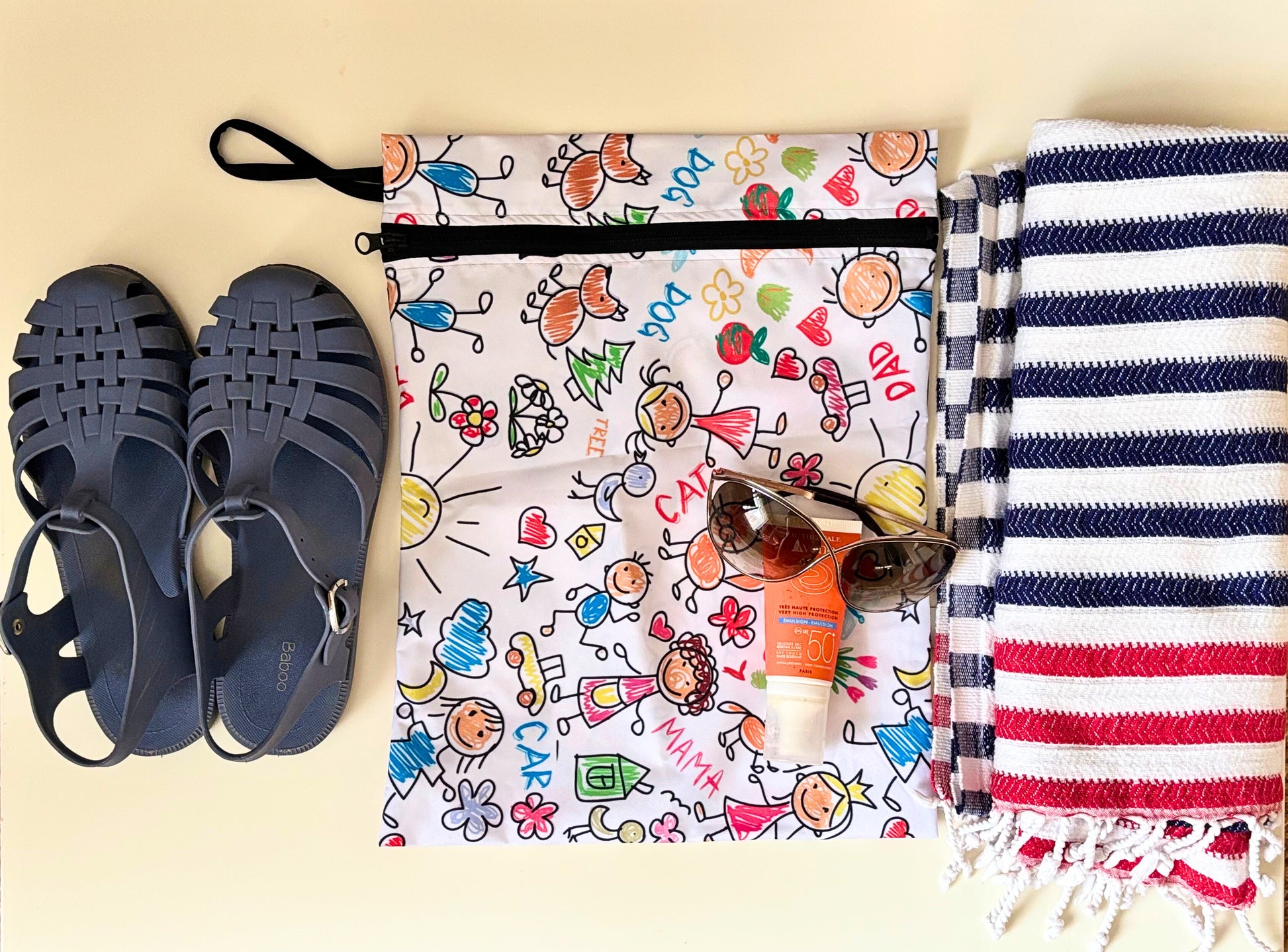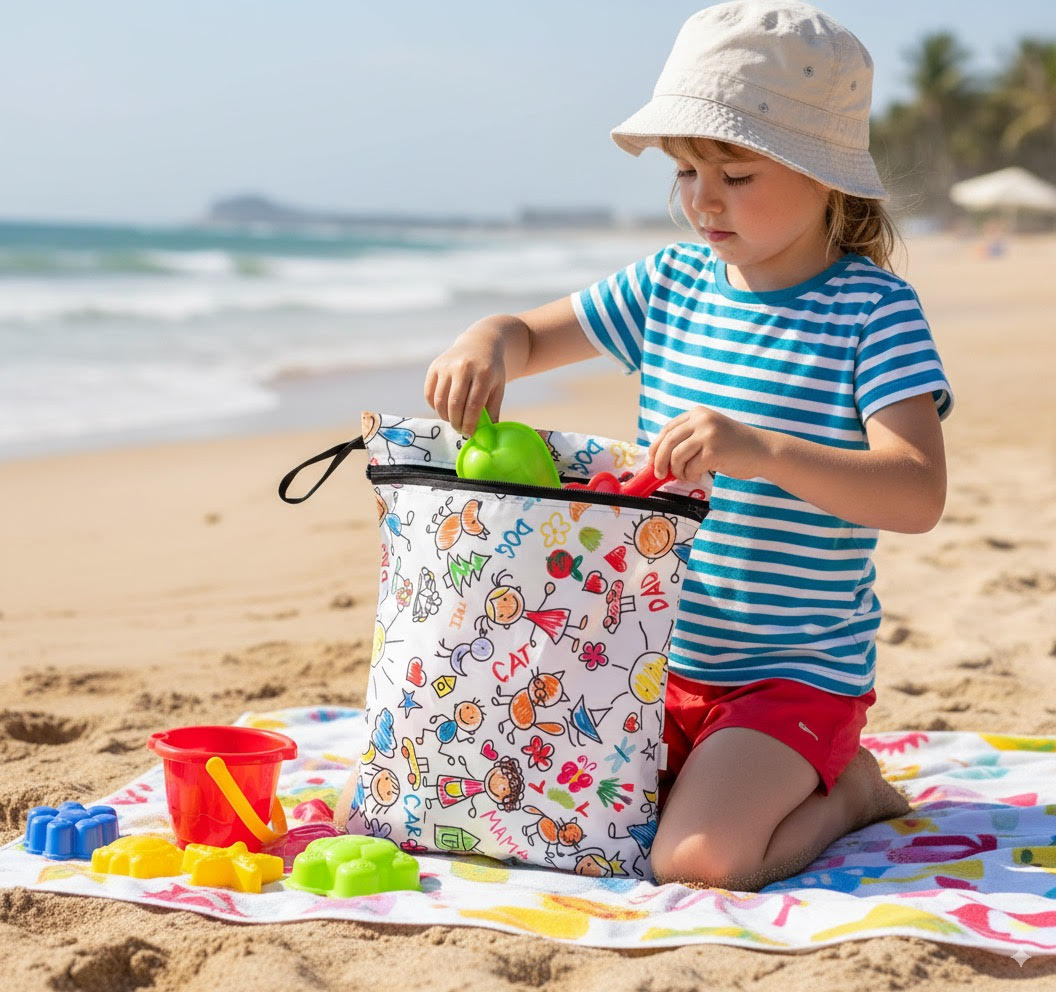 "Fermuarlı, Askılı, Su Geçirmez, Islak Mayo, Kıyafet, Kirli Bez Taşıma Çantası" Kaliteli Malzeme: İki katlı kumaş, sıvı geçirmez özelliğe sahiptir.; Yıkandıkça teknik özelliklerini kaybetmez.; Tek katlı daha ucuz kumaşlar 2-3 yıkamadan sonra su geçirmeye başlar.; Çok Amaçlı Kullanım: İster ıslak isterseniz kuru ve kirli eşyaları taşımak için idealdir.; Sağlam ve dayanıklıdır.; Tatil İçin Harika: Plajda veya havuzda ıslak mayo ve kıyafetlerin kurumasını beklemeden bu çantaya koyup eve gidebilirsiniz.; Bebeğiniz İçin: Kirli bebek bezi, kirli/terli spor kıyafetleri, oyuncaklar, makyaj malzemeleri ve elektronik ürünler için de kullanılabilir.; Hızlı Kuruma: Silerek veya makinada yıkanarak temizlenir.; Asmak için askısı vardır.; Moda Desenleri: Günlük yaşamınıza renk katar.; Bu ürün, bebeğinizin ıslak, temiz veya kirli çamaşırlarını, ıslak mendilini, oyuncaklarını taşımak için harika bir seçenektir.; Ayrıca bebek bakım çantası içinde eşyaları sınıflandırmak için de kullanılabilir.; Su ile temas etmesini istemediğiniz, oyuncak, makyaj malzemesi ve elektronik ürünler için de uygundur.; %100 Polyester iplikle dokunmuş, OEKOTEKS 100 teknik kumaş.; Azo-Boyar madde, bpa, pvc, vinyl, phthalate, kurşun içermez.; Su bazlı boyalıdır.; " *** "Yorni Zippered, Strappy, Waterproof, Wet Swimsuit, Clothing, Dirty Laundry Carrying Bag looks highly functional and environmentally friendly! Size of the bag is written in the name of the product page.; Here are some of Yorni bag's features: Quality Material: Made from two-layer fabric, it has a waterproof feature.; Even after washing, it retains its technical specifications.; Single-layer cheaper fabrics tend to start leaking after 2-3 washes.; Versatile Use: Whether wet or dry, it’s ideal for carrying dirty items.; It’s sturdy and durable.; Perfect for Vacation: You can put wet swimsuits and clothes in this bag at the beach or pool without waiting for them to dry.; For Your Baby: It’s suitable for carrying dirty baby diapers, sweaty sports clothes, and toys.; It can also help organize items in your baby care bag.; Quick Drying: It can be cleaned by wiping or machine washing.; It has a hanging strap.; Fashionable Patterns: Adds color to your daily life.; 🌟👜" Yorni bag is a great choice for carrying your baby’s wet, clean, or dirty laundry, wet wipes, and toys.; It’s also suitable for protecting electronic items from water.; Before placing wet items inside, make sure to squeeze out excess water.; Note that this bag is not designed for carrying water directly; filling it with water may cause leaks at the seams.; It’s made from 100% polyester thread, OEKOTEX 100 technical fabric.; It’s free from azo dyes, BPA, PVC, vinyl, phthalates, and lead.; The coloring is water-based